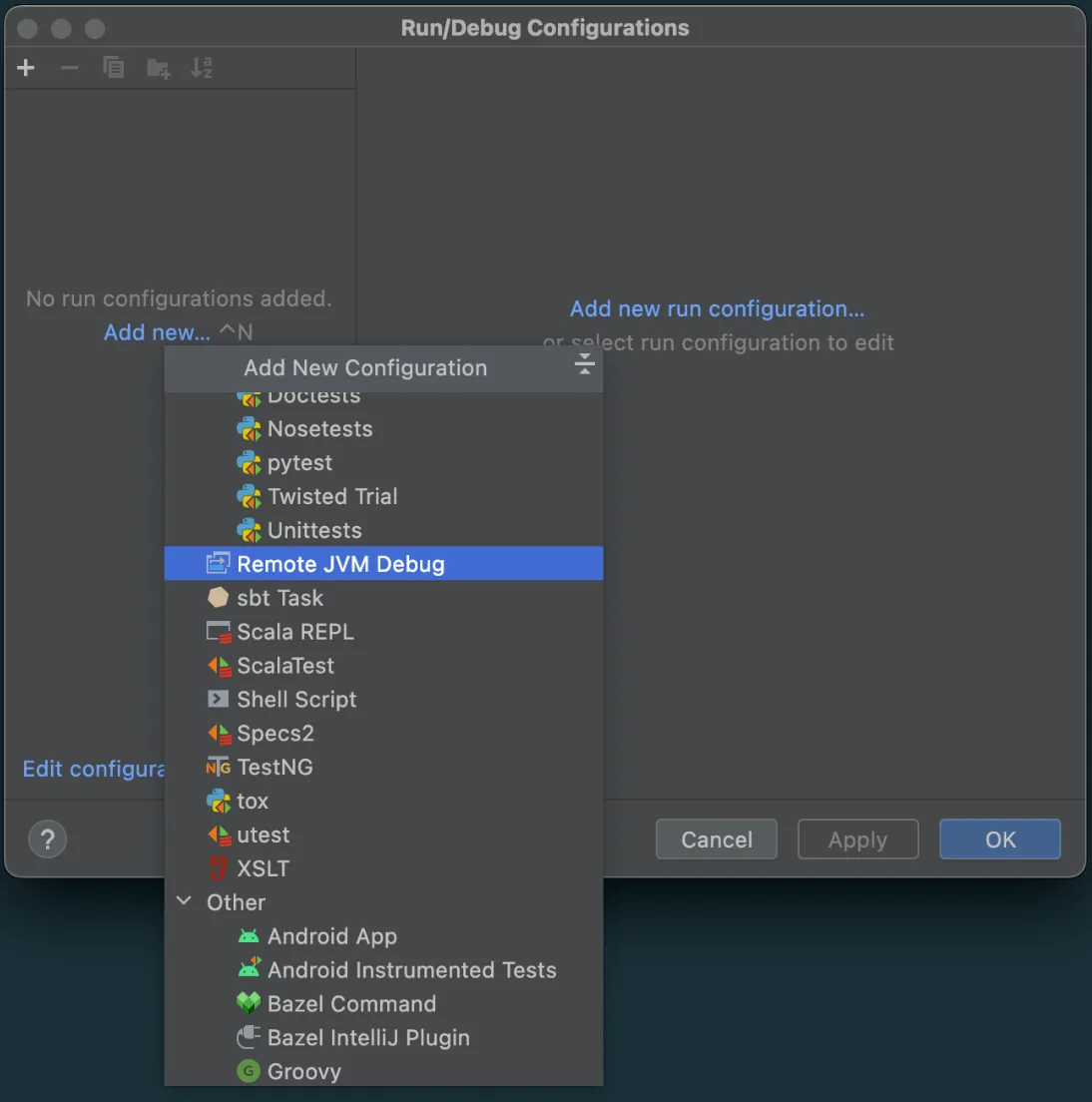 Add a new debug configuration in IntelliJ